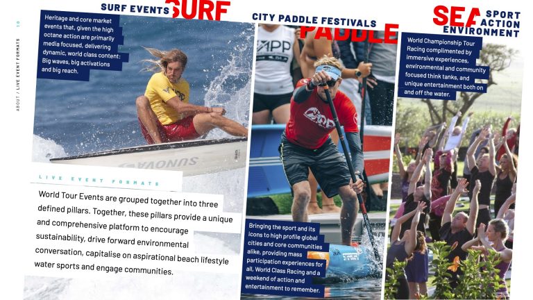 We wanted to emphasise at stand-up as the first sport that really connects different water sports together. We want to embrace different aspects of living and breading the ocean and to connect that with the Waterman League values. So we started with everything except the logo.
